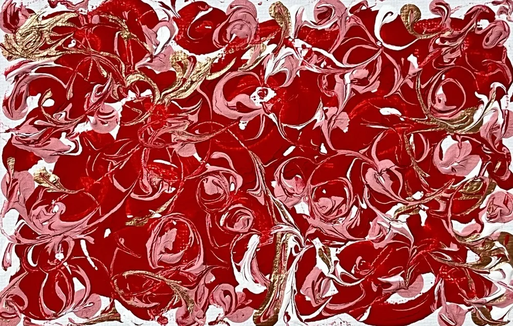 ブロンズピンクを纏った深紅のベルベットが織りなす流麗な動きが、見る者を魅了し心に情熱を灯します。この華やかな色合いは、まるで情熱的な物語を語りかけるかのように、心の奥底に響き渡り、無限の感情を引き出します。混沌の中から現れる調和の波が、内なる探求の旅を促し、心の深い部分に安らぎをもたらします。