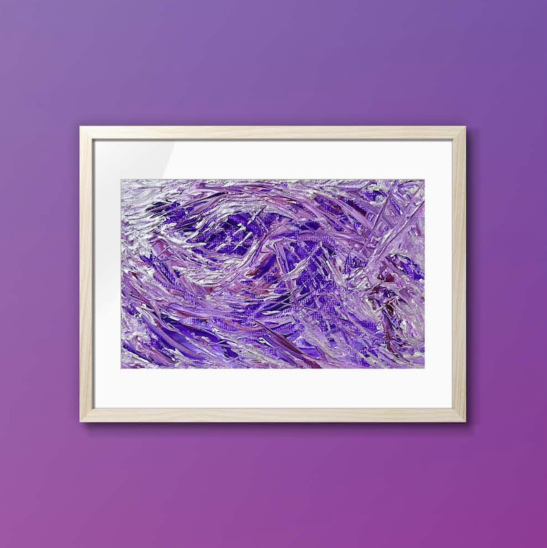 優雅なラベンダーの色合いと冬の静けさが見事に融合した作品です。柔らかな紫のグラデーションが、心の奥に穏やかな安らぎをもたらし、見る人を夢の世界へと誘います。透き通るようなテクスチャーが冬の空気を感じさせ、心を穏やかにし、心地良いひとときを提供してくれること間違いありません。