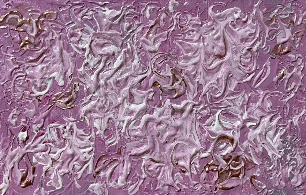 穏やかなライラックの色合いが、ゴールドの光を纏いながら、ゆったりとしたうねりを描き出します。心に安らぎをもたらすこのアートは、優雅な色彩の交錯がまるで夢の中の風景のように、観る人を魅了します。柔らかな光の中で広がる奥深い表現は、心の琴線に触れ、心地よい余韻を残します。このキャンバスは、静寂の中に佇む美しさを永遠に感じさせてくれる作品です。