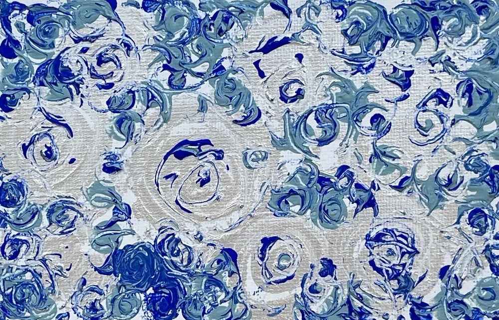 穏やかな青系グラデーションの渦が、心と空間を心地よく包み込み、自然に調和する色彩の組み合わせは、まるで水面を舞う波のように優雅に揺れ動きます。この作品は、静かに広がる美しさが観る人を魅了し、心に安らぎをもたらします。鮮やかなブルーとパールホワイトの対比は、まるで夢の中にいるかのような空間を演出し、気持ちをリフレッシュし、穏やかなリズムと豊かな彩りを添えてくれることでしょう。