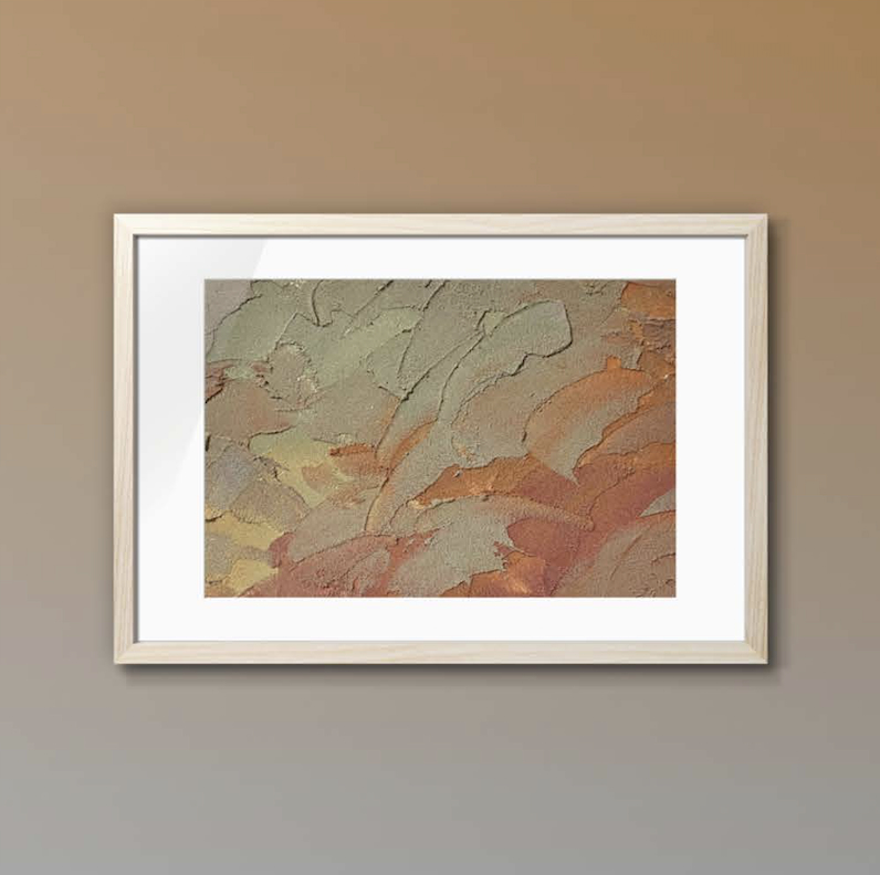穏やかな砂色が織りなす抽象の風景が、まるで自然の一部のように空間に溶け込んでいきます。優しく広がる色彩は、心を静め、日常の喧騒から解放してくれる空間を生み出します。この作品は、繊細な砂のテクスチャーが魅力を引き立て、観る人に心地よい安らぎを提供します。また、特有の流れるような動きが、豊かな感受性を引き出し、心をほぐす瞬間を演出します。