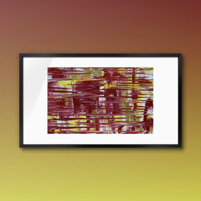 鮮やかな緋色と黄金の層が溶け合う、幻想的な夕焼けの情景を描いたアクリル抽象画です。流れるようなラインと独特のテクスチャーが調和し、見る者の心に温もりと感動を与えます。色彩の変化が生み出す豊かな表情は、空間に洗練された雰囲気をもたらし、特別なひとときを演出するアート作品です。