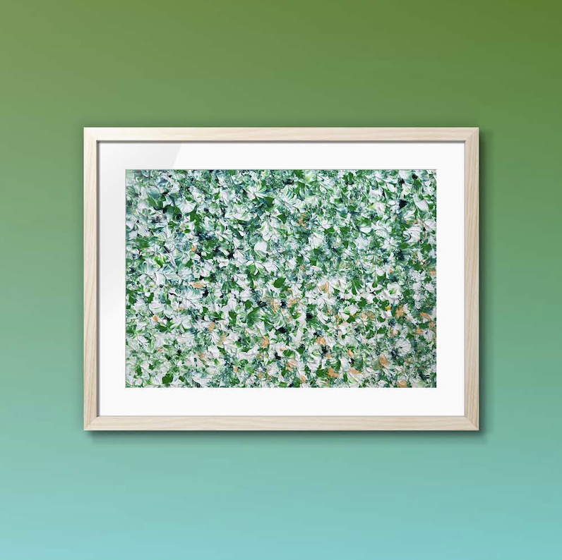 鮮やかな緑のしろつめ草が柔らかな風にそよぐ様子を描いた作品です。穏やかな空間が心に広がり、日常のストレスを和らげるような安らぎをもたらしてくれます。まるで静かな庭で優しい風を感じながら、心を解きほぐすような感覚をお楽しみいただけます。